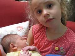 Hi, big boy! Why are you crying? Let your big sister give you a hug and a squeeze. C’mon – oh! – you’re getting almost too heavy for ME to pick up! Mmmm… let’s rub noses!